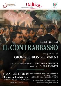 Giorgio Bongiovanni dirige e interpreta il Contrabbasso di Patrick Süskind presso il Teatro LabArca in via Marco d’Oggiono 1. Un monologo che è il racconto di solitudine e amarezza di un uomo mite e frustrato che ha dedicato l’intera vita alla musica e al suo strumento, il contrabbasso. Anni trascorsi nelle retrovie delle orchestre rivendicati dal protagonista che, nel fare la retrospettiva della propria vita, cerca negli istanti ormai perduti motivi di orgoglio e riscatto. Nell’intimità del Teatro LabArca il monologo di Giorgio Bongiovanni prende la forma della confessione di un musicista che, pur avendo trascorso una vita in scena, non è mai stato sotto la luce dei riflettori.