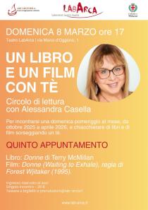 Domenica 8 marzo alle ore 17 al Teatro LabArca in via Marco d’Oggiono 1 continua il circolo di lettura Un libro e un film con tè tenuto da Alessandra Casella con il quinto appuntamento sul romanzo Donne di Terry McMillan e il film Donne (Waiting to Exhale), regia di Forest Wjitaker (1995).