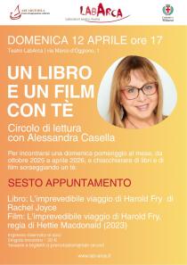 Domenica 12 aprile alle ore 17 al Teatro LabArca in via Marco d’Oggiono 1 continua il circolo di lettura Un libro e un film con tè tenuto da Alessandra Casella con il sesto appuntamento sul romanzo L'imprevedibile viaggio di Harold Fry di Rachel Joyce e l’monimo film con la regia di Hettie Macdonald (2023).